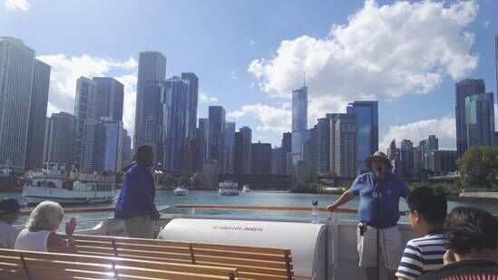 站在里边如同腾云凌空一般。站在瞭望台上可俯视芝加哥市全景还可以观赏碧绿浩瀚的密歇根湖旖旎多姿的景色;碧波荡漾,水光粼粼,游艇如织,天水一色,真有“一柱擎天,俯视万有”之感。