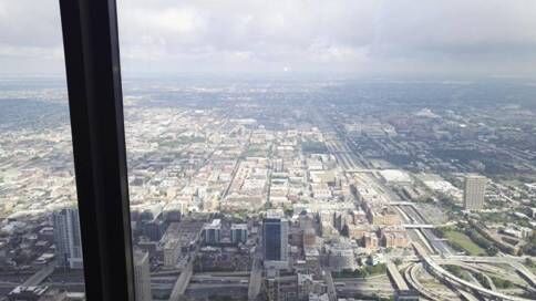 我们参观了西尔斯大厦在第103层上的瞭望台,乘坐特快电梯不到一分钟就可到达。在瞭望台有三个玻璃观察点。
