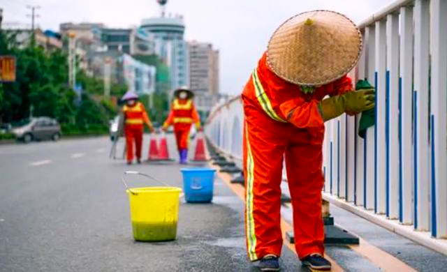 当我们走在干净、宽敞的街上时,当你随手把垃圾扔在地上时,你是否想过这舒适、优美环境的创造者呢?这一切的创造,就是勤劳伟大的环卫工人的辛勤劳动的结晶。