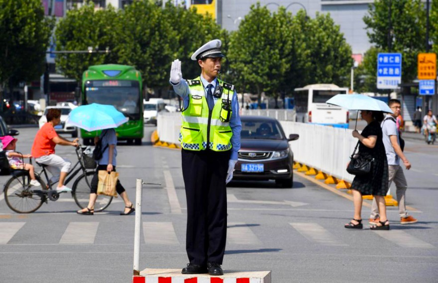 “五一”小长假高峰出行期,在重庆沙坪坝杨家坪街道的交通路口处,顶着烈日的他,汗水一粒粒的滴落。他沉着冷静,认真负责的指挥着行人和车辆的通行,维持交通秩序,一年四季,春夏秋冬,三百六十五个日日夜夜。
