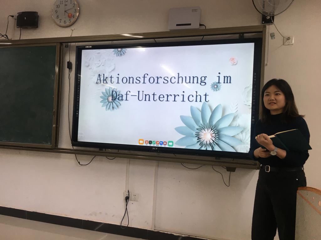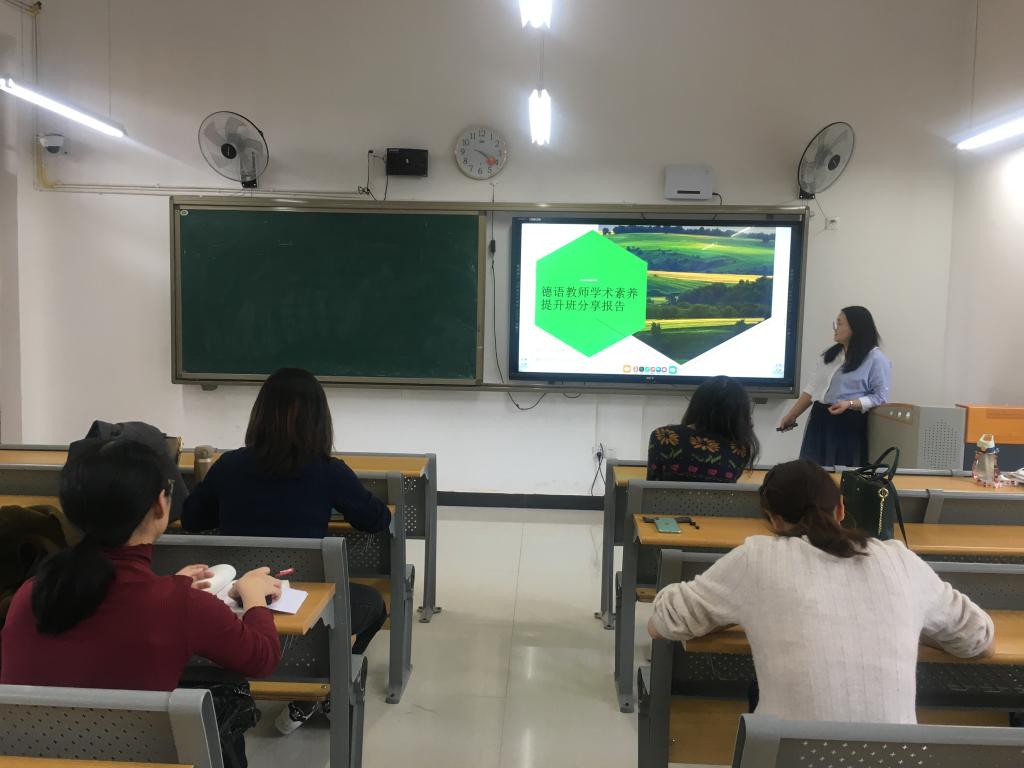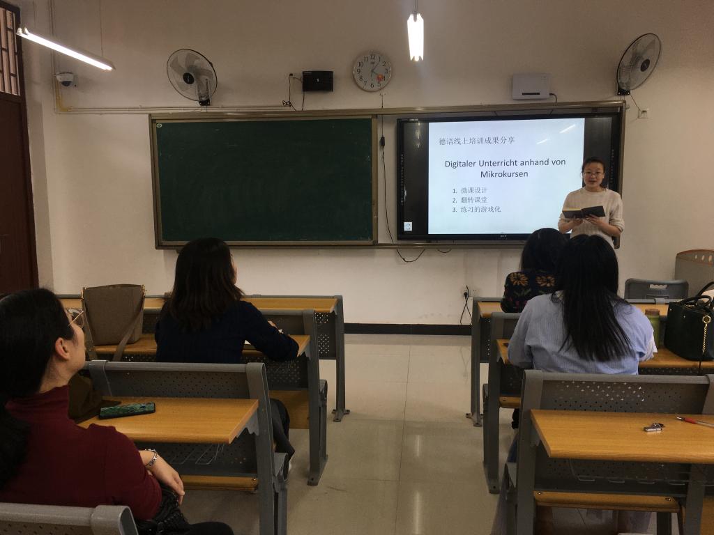 2020年11月11日,外国语学院德语专业教研室在天渠105教室举行了“德语线上培训成果交流分享会”。德语专业教师悉数参加,其中熊光源、朱惠东、武桐和齐菲菲四位老师报告了所学成果,随后全体教师结合我校德语专业学生情况、个人教学心得及科研情况深入讨论了报告内容并获得了诸多启发。