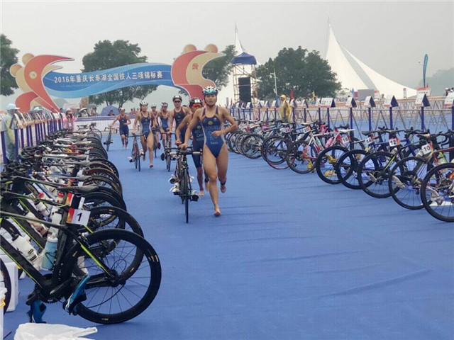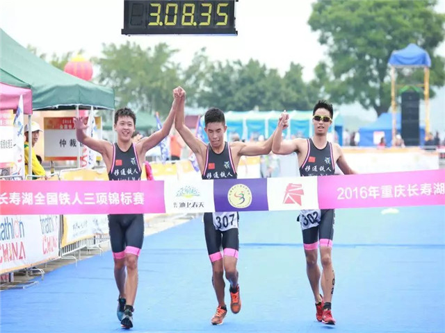 25日的长寿湖风景区天气适中,有绵绵细雨但淋不透运动员的比赛决心,移通学院铁人三项队53名参赛队员在早上六点起床,在换项区开放时间段内大家准备就绪。游泳作为三项的第一项,而后是骑车和跑步。首先出战的是男子半程分龄组,接着是女子半程分龄组,跳入水中那一刹那水花四溅,大家全身心投入比赛中无暇顾及温度,尽管风浪汹涌移通铁人依旧驰骋不后退,游泳赛段过后观众越来越多,在观众和队友的欢呼加油声中运动员奔去自行车赛场,下过雨的道路很滑,加上坡多路陡,很考验运动员的体力,而且与其他运动员相比移通铁人稍显年轻,因为年轻,大家更是干劲儿十足,20公里无畏惧。最后5公里的跑步大家也都一直坚持下来,拼出自己最好水平。半程比赛快结束时全程运动员也已经下水开赛,全程总距离51.5公里,更具挑战性,运动员的竞争对手也是十分强大的,在压力大的条件下大家还是竭尽全力去战斗,有运动员突发状况,但依旧坚强的完成比赛。