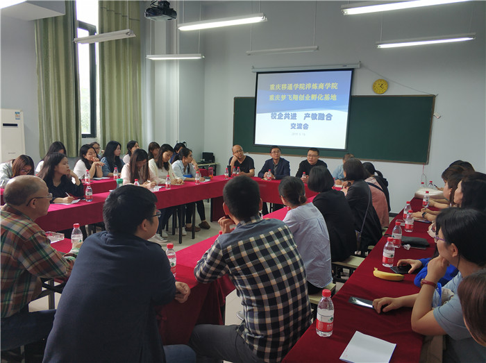 信息产业商学院的发展,离不开师资队伍的建设,而“四位一体”的人才培养模式定位,为商科教师提供了新的机遇和挑战。为提升教师整体水平,进一步深化校企交流,克服商学院老师从校园到校园、理论知识与实践经验结合不够的短板和问题,5月15日,淬炼商学院组织全体老师前往位于合川区宝龙广场的梦飞翔创业园进行商业实战项目交流和互动。
