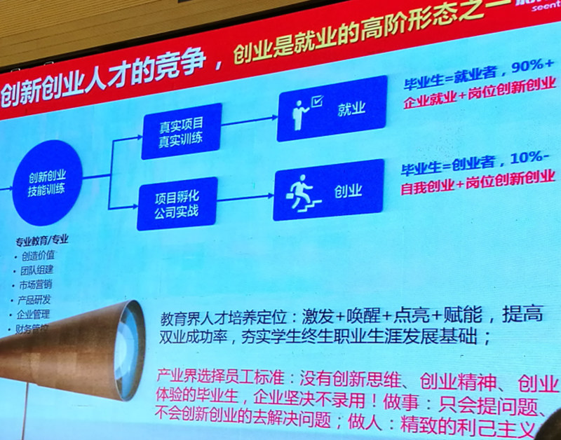 新道公司的高级副总裁周前进从他们所服务的企业对人才的要求和标准出发做了相关报道,提到企业在选拔人才时,越来越看中高校人才的创业创新思维和综合能力。当代的大学生应该要清晰自己的目标,建立创新创业的思维模式、能运用自己的专业知识和综合能力去解决企业的实际问题。