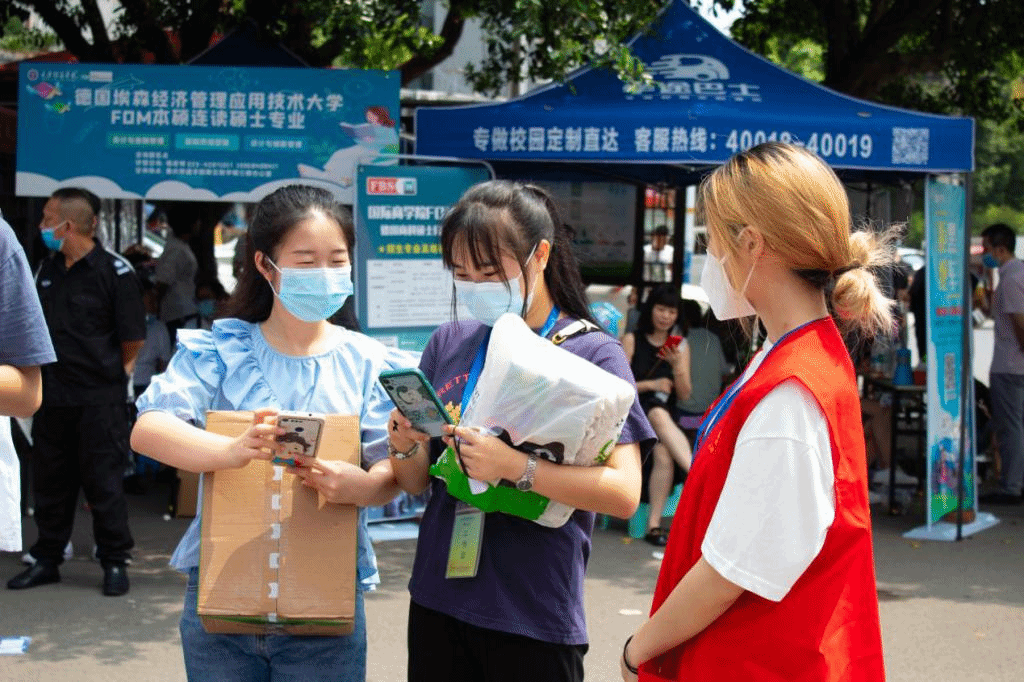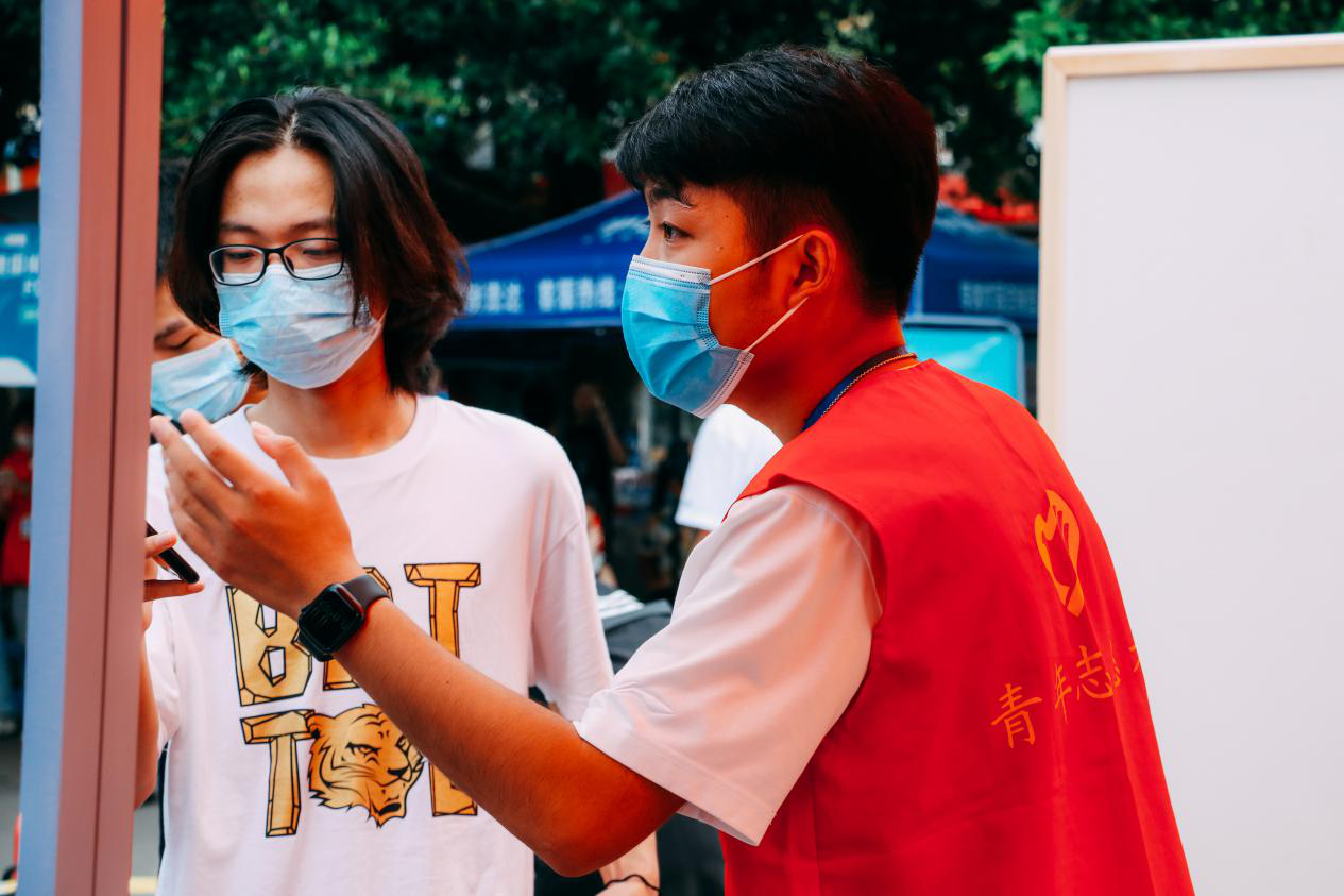 迎新现场,随处可见细心周到的引导标识牌、内容详细的校园地图,还有谦逊有礼的迎新志愿者。学校积极响应疫情防控相关要求,在新生报到流程上,增加了“一码一单”(通行绿码和48h内核酸检测阴性报告单)通行服务,简化程序、提高效率。