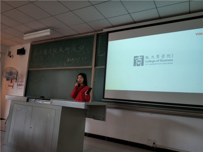 毕业于香港城市大学的叶菲菲老师主要从办学理念、校园硬软件以及国际化校园生活等方面分享了自己的心得。她所就读的所就读的商务资讯系统专业属于商业资讯与信息技术结合的交叉学科。该项目致力配合当代信息管理人才的需要,旨在将学生培养成为能将信息技术熟练运用到商业领域的人才。而这一理念正好与学校“信息产业新商科”的建设思路相吻合,因此在香港的求学经历也为她现在的工作带来了许多灵感与启发。