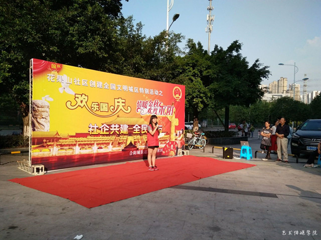 他们甜甜的一笑我们心间暖暖的一热,这就是志愿者这就是那种情怀。对于志愿服务我们也许不能像企业家那样,也不能像那些大人们一样。但作为志愿者你的小小行为,不经意间的帮助也许对于那些真正需要帮助的人们多么的重要。我们每一个人都不应该忽视你自己,我们要使自己拥有这样一种情怀。 9月29日,国庆节前,很多的人都回家了。但在今天我们与花果山社区居委会合作开展了创建全国文明城区特别活动之欢乐国庆情暖金秋欢度重阳的活动,我们的志愿者没有像部分同学一样着急回家过节或出游。他们选择了志愿服务,与社区一起共度佳节。我们热情表演节目和老奶奶老爷爷一起互动,只为了给他们带去些许温暖。活动现场主持隆重介绍了我们重庆邮电大学移通学院艺术传媒学院的志愿者们,我们的志愿者也表现出来他们应有的风采。节目环节他们毫不怯场,表现十分精彩。