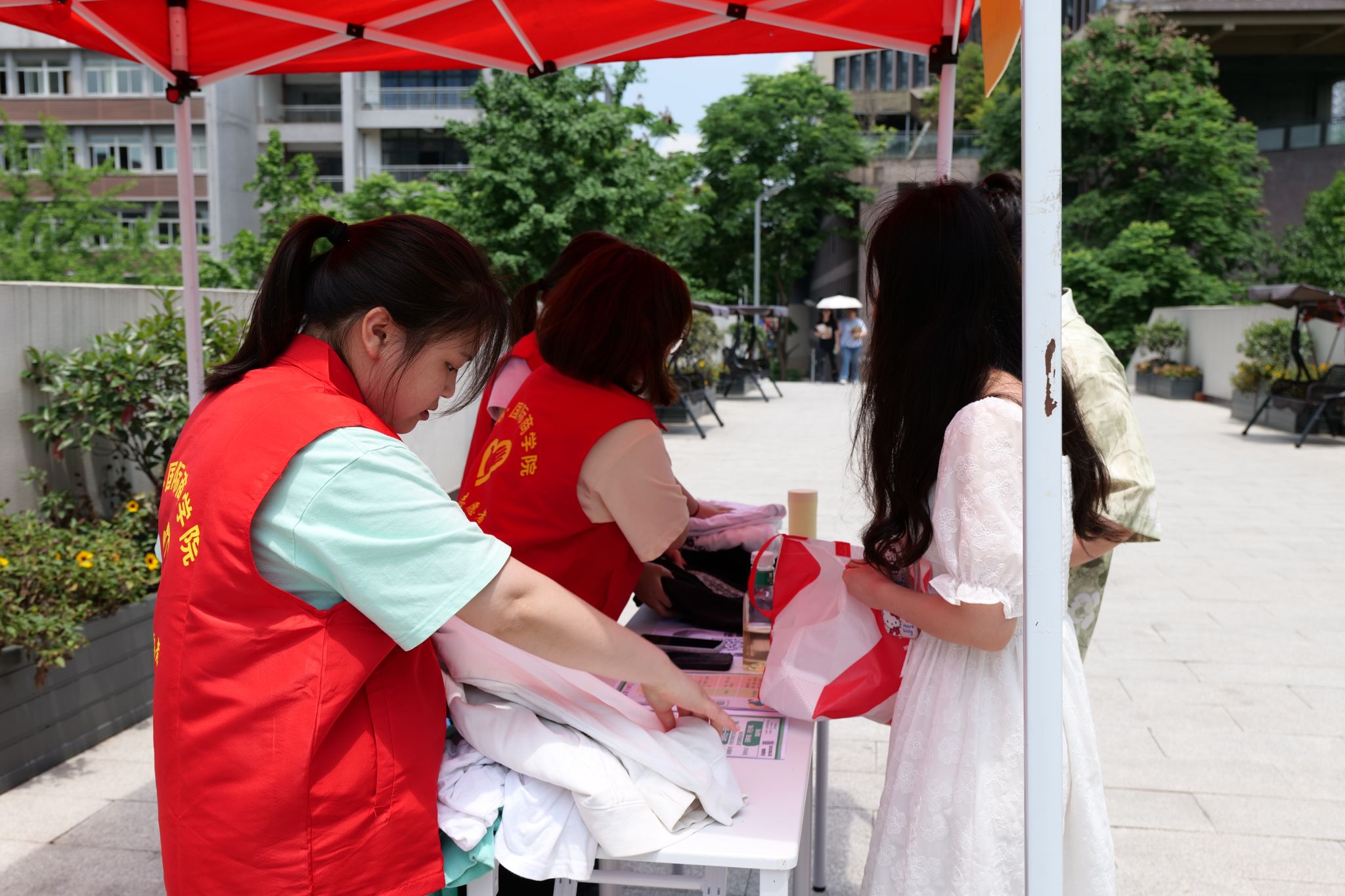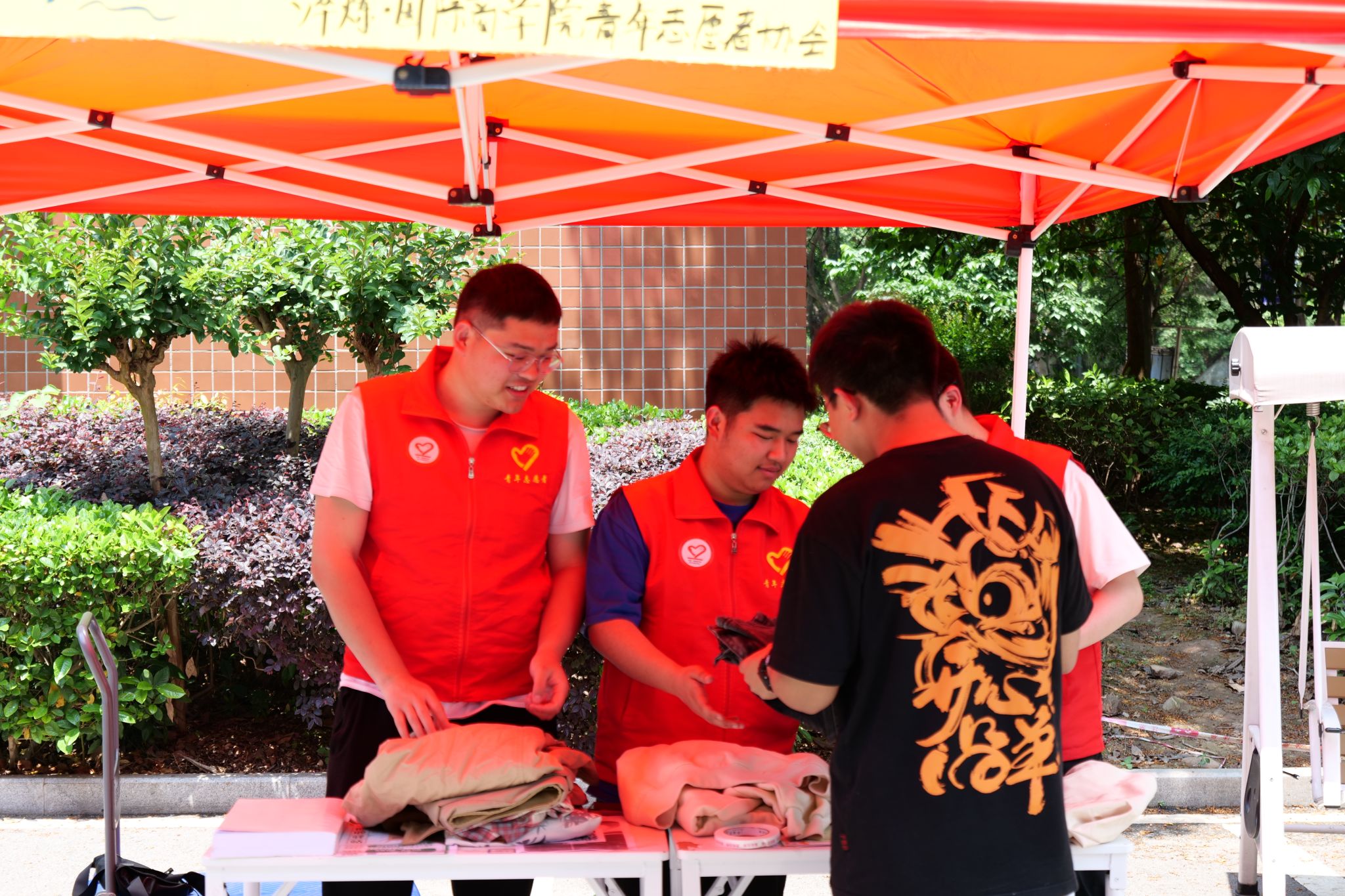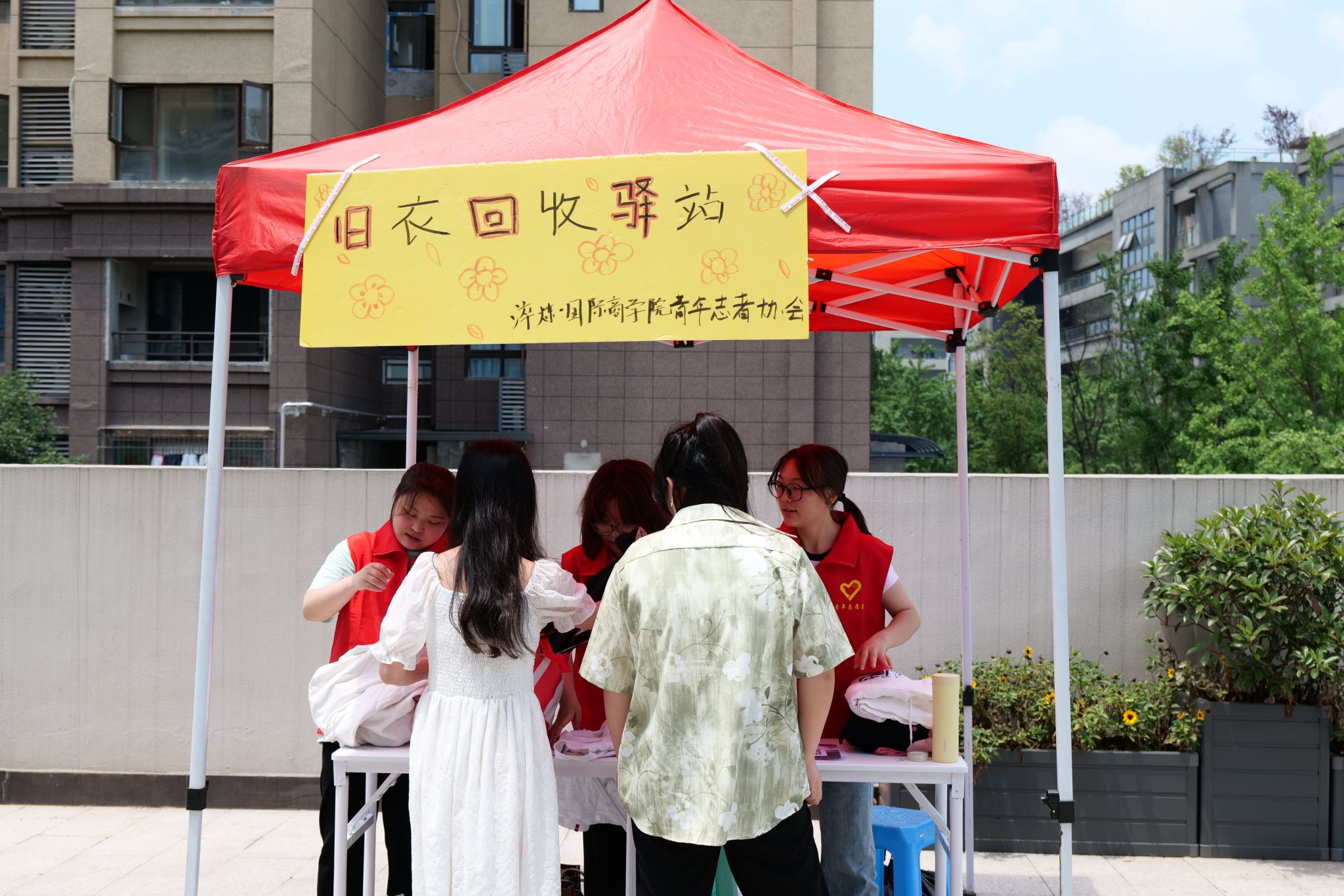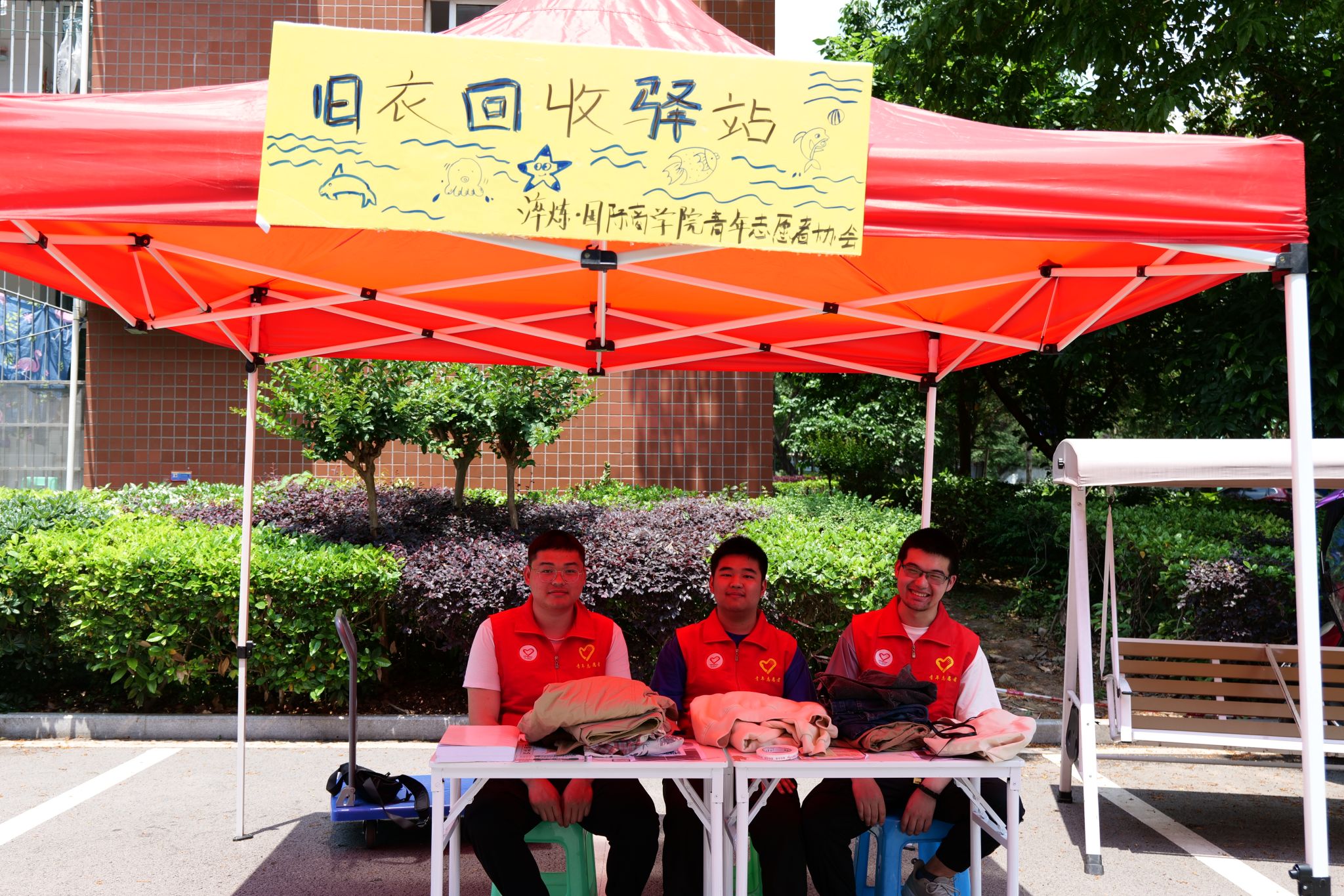据调查结果显示,每年我国淘汰下来的旧衣物约3500万吨,再利用率不到10%,造成的资源浪费,相当于大半个“大庆油田”。衣物的不利用,造成巨额的资源浪费和污染是每一个人无法估量的。在活动前期,淬炼·国际商学院青年志愿者协会为此次旧衣回收活动做出了充足的准备,分别在花果书院、天空书院和南湖书院三个地方设立回收地点,方便捐赠衣物的同学。同时,活动准备期间有数名志愿者在设点帐篷附近维护秩序,耐心地为同学们讲解捐赠步骤及相关事宜。