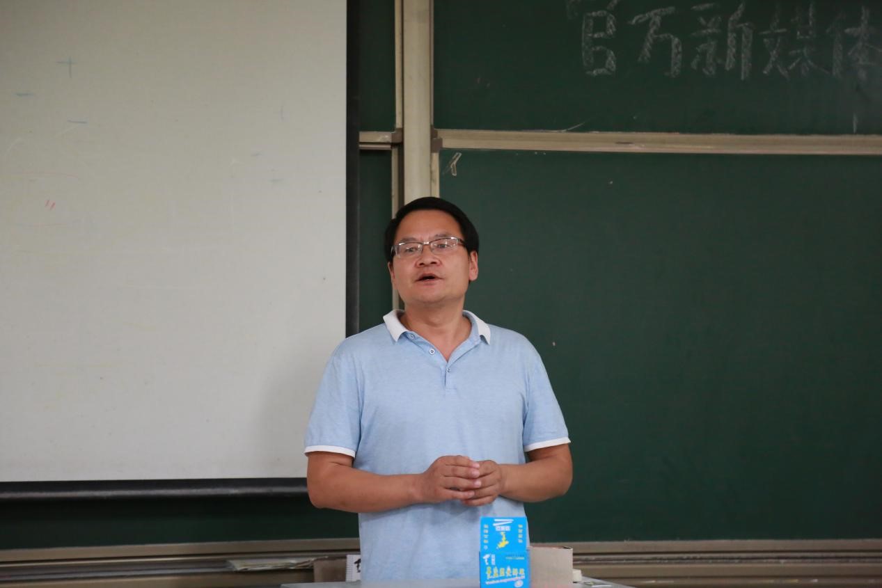 活动伊始,党委组织宣传部部长、宣传新闻中心主任苏述庚对新加入团队的成员表示热烈欢迎,并从我校新媒体发展历程、团队现状及职责、校园媒体人应具备的素养、团队凝聚力四个方面向学生团队介绍了部门基本情况及未来工作、活动开展的方向。在肯定上一届学生团队工作成果的同时,要求新一届成员在新媒体这个需要不断学习的领域,努力思考在前,行动在前,提高自身专业素养,为我校新闻宣传工作增添年轻色彩。