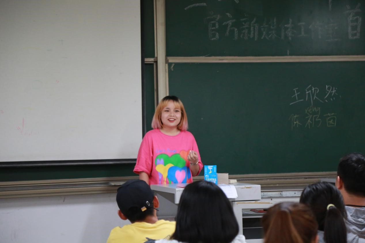随后,宣传新闻中心官方新媒体工作室各部门学生干部对部门分工与职责做了详细阐述,使新成员快速了解团队职责与工作内容。官方新媒体工作室下设运营部、编辑部、影像部、设计部四个部门,各部门分工协作共同管理我校官方新媒体平台。接着,团队新老成员们依次上台自我介绍,意味着各位新成员正式加入官方新媒体工作室,希望所有成员都能能将今天这份热爱及憧憬带到未来的每一天。