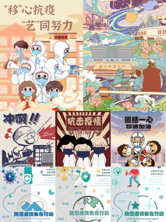 11月8日紧急开启疫情防控,移通按下了暂停键,学校实施全员静默管理,学生足不出寝,写生工作由线下转为线上。写生组教师们开展紧急线上会议,共同商讨提出让学生以——“移”心抗疫,“艺”同努力为主题进行绘画作品和海报的创作,同时袁梦茹老师作为防疫志愿者,建议可以让学生进行防疫口罩图案的设计。学生们虽感遗憾不能继续室外写生,但也都纷纷表示理解,认真完成写生作品。