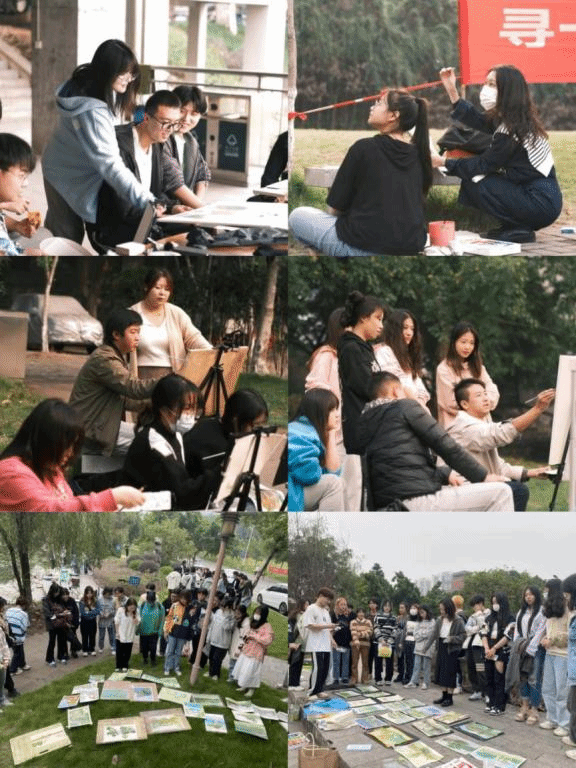 11月7日,艺术传媒学院写生组的七名教师带队,组织学生带好画具来到南校区双子湖到下里巴人剧场的区域内展开一整天的写生课程。入学以来第一次在室外绘画的教学形式让同学们感到新奇,手握画笔的她们也成了双子湖周边一道靓丽的风景线。