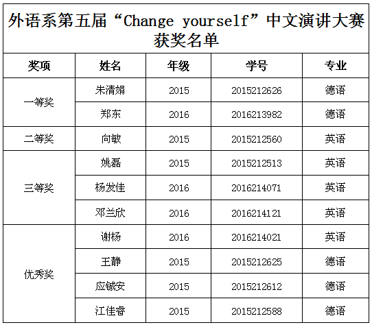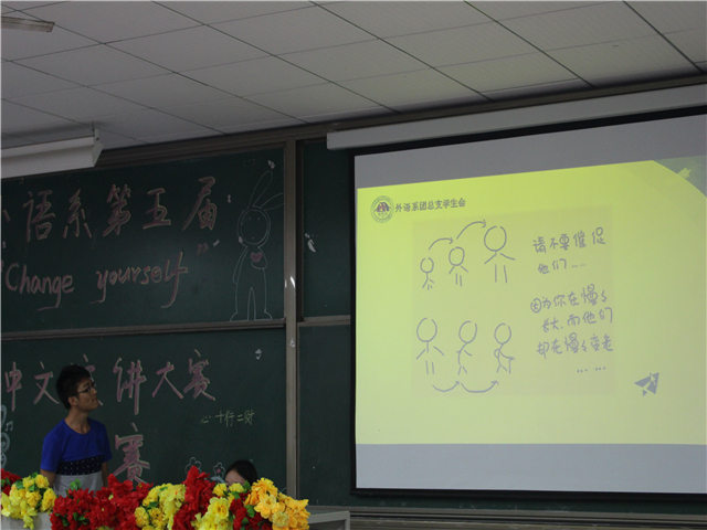 本次比赛的初赛以班级为单位举行,让更多的同学挑战自己站上那三尺讲台。通过两周的比赛,共有11班级推选出的16名选手共同角逐外语系的“演讲达人”。盼望着,外语系第五届“Change yourself”中文演讲大赛决赛也拉开序幕,选手们即将用自己的语言和动作感染现场的每一个人,向观众们展示着完满路上他们的蜕变与成长。