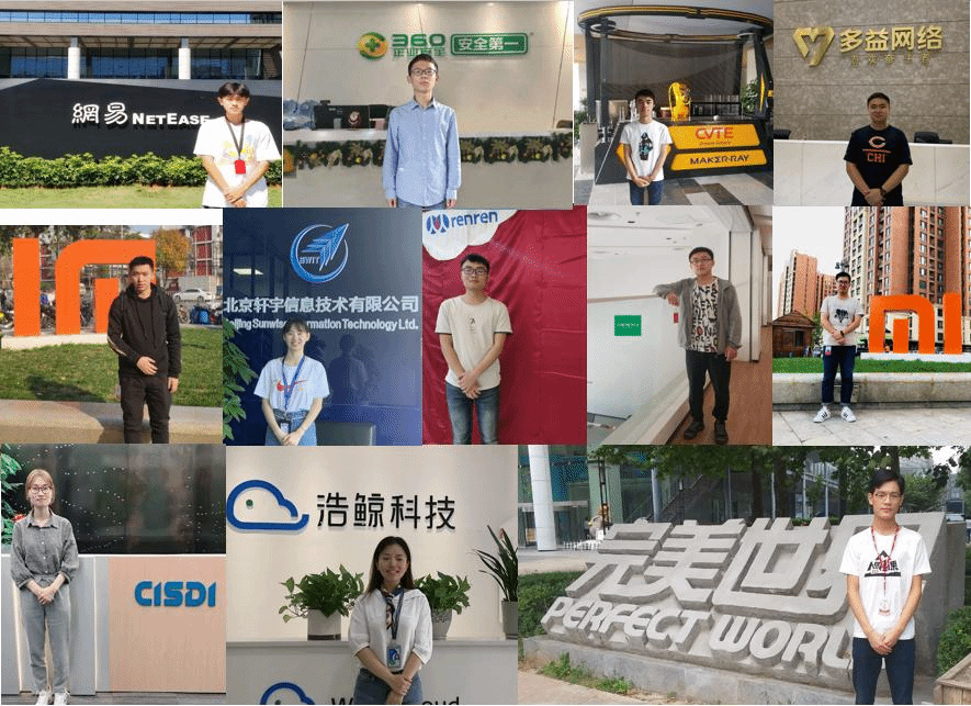 这一年是我国经济历经坎坷的一年,在贸易战、技术封锁、高科技企业裁员的大环境下,双体系2019届学员在与名校的竞争中依然保持强劲的竞争力,其中在世界500强、上市公司、国有企业等大型企业高质量就业人数达175人,占学员总数的80.9%,其中定制班36人入职中国航天科工集团304所,31人入职中国通信服务有限公司,12人入职中兴软创,10人入职春秋航空研发中心,9人入职北京航天测控集团,黄国庆、徐瑞临、胡权、冉小娅等4名学员入职小米,曾杨、蒋其宏、林锐、谭文为等4名学员入职奇虎360公司,张杨入职启明星辰,吴贞伟入职今日头条,邓鹏入职完美世界等知名软件企业。