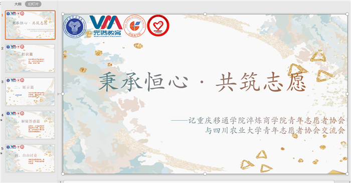 本次线上交流会不仅体现了四川农业大学园艺学院青协踏实的工作态度,优良的工作作风以及独特的工作魅力,更加明确了接下来志愿服务发展道路方向的扩展性及全面性,同时双方约定在往后志愿活动开展中达成长期合作。同时,感谢川农青协的分享,帮助淬炼小志明确志愿服务发展方向,将文化传承贯彻实施到今后的志愿服务活动中,丰富实践活动内容,推动服务质量的提升。相信两院青协会在今后的合作道路上越走越远,共同在志愿服务的道路上绽放光芒。