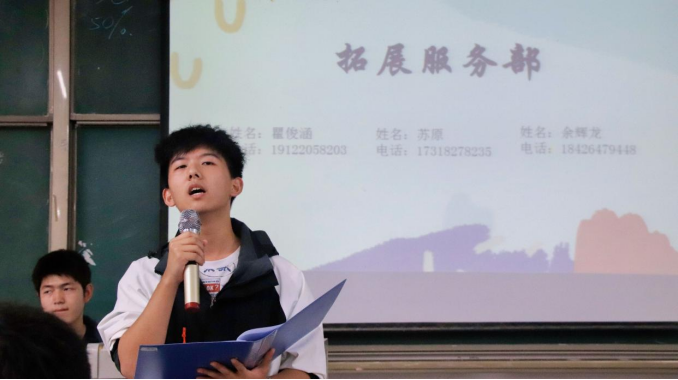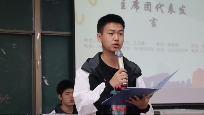 在各部门代表发言结束后,学生社团联合会主席团成员钟玉寒上台发言。他的发言不仅对接下来的社团招新与“灯塔”学生社团负责人培养计划做出期望与规划,同时也动员全体学生社团负责人积极迎接即将开展的学生社团招新活动。社团招新是新同学入校所参与第一个大型社团板块活动,是学生社团注入新鲜血液的大好时机,也是学生社团联合会与各学生社团负责人加强合作与沟通的好契机。“灯塔”学生社团负责人培养计划则是为更好地促进社团发展,为学生社团负责人提供一个优质的学习平台和学习机会。学生社团联合会主席团成员钟玉寒表示,希望社联内部、社团内部、社联与社团之间都能做到团结一心,并肩同行,加强彼此合作与沟通,同时根据现有情况,不断调整工作方案,充分展现出79个社团的精彩风貌,共同谱写属于社团的新篇章。