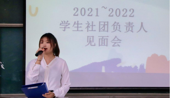 在会议的最后,学生社团联合会指导老师姜馨怡老师向全体参会人员介绍我校学生社团的发展历程。在发言中回顾了上一学年学生社团的收获与成长,对过往的工作作出肯定。同时对2021-2022学年学生社团提出新的要求与希望,希望各学生社团能够不断推进社团管理,注重社团纪律,实现学生社团活力提升和品牌推广,加强社团联盟的合作与发展。为增强社团负责人的综合能力,学生社团联合会将定期开展培训,完善评优激励体制,更好地服务管理学生社团。