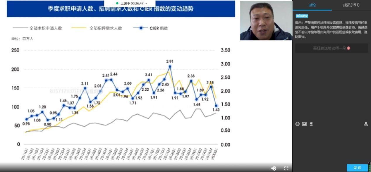 在新冠疫情和贸易摩擦下,就业形势已经严峻,国家管控“泡沫行业”,例如“双减”政策下逐步衰退的教育培训行业,及宏观调控下逐渐落寞的房地产行业。国家整改重锤落下,于大学生就业问题雪上加霜。2021年整体经济环境处于恢复期中,随着经济发展持续增长,下半年就业形势逐步好转。同时中美贸易摩擦、政策制度性障碍、结构性矛盾及慢就业等问题不容忽视。潘院长评价道,2021年虽就业压力大、就业形势严峻,但经济强势复苏,我们应当充满信心。