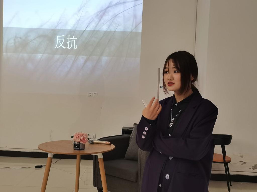 郭老师展示了几首在大学时期的诗作,其中《我该如何描写一朵花的悲伤》引起了大家的共鸣。她说刚开始写诗是出于一种冲动,没有更高的设定和目标,并不是想当作家或非得当作家。只是“怎样将自己的情绪表达出来,让别人理解自己。”