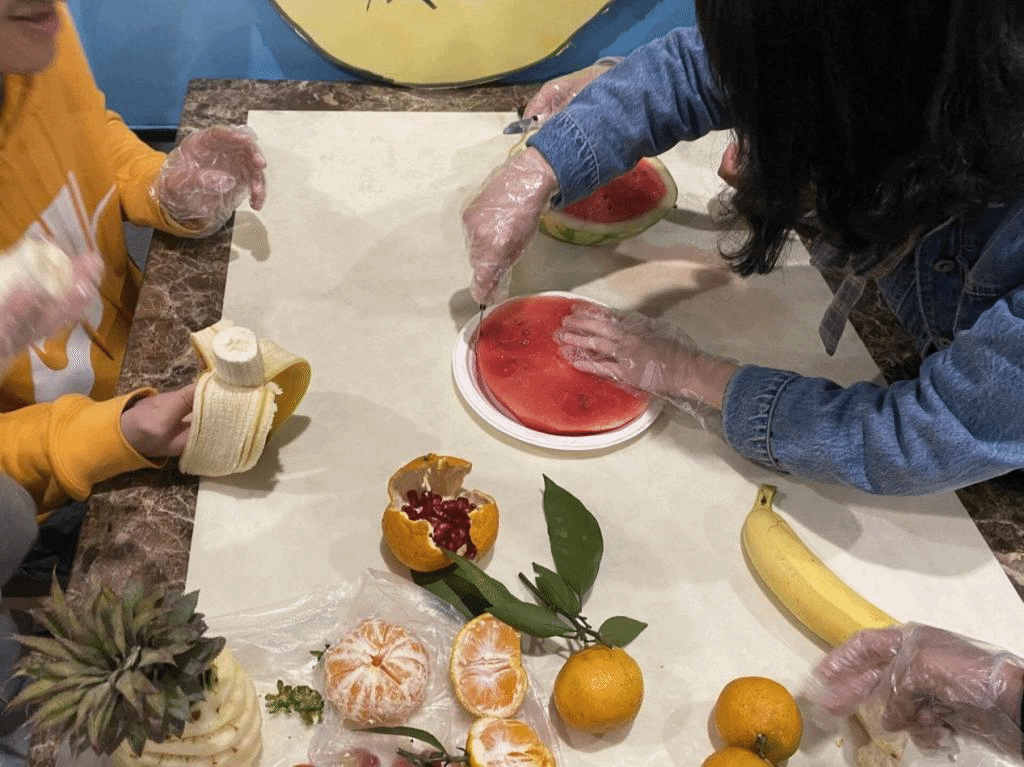 水果拼盘大赛以水果造型,勾勒出无限创意。同学们激烈讨论,展开想象,用水果装点纸盘,摆出了各式造型,吃到嘴里的不只是水果,还有对生活热爱的仪式感。