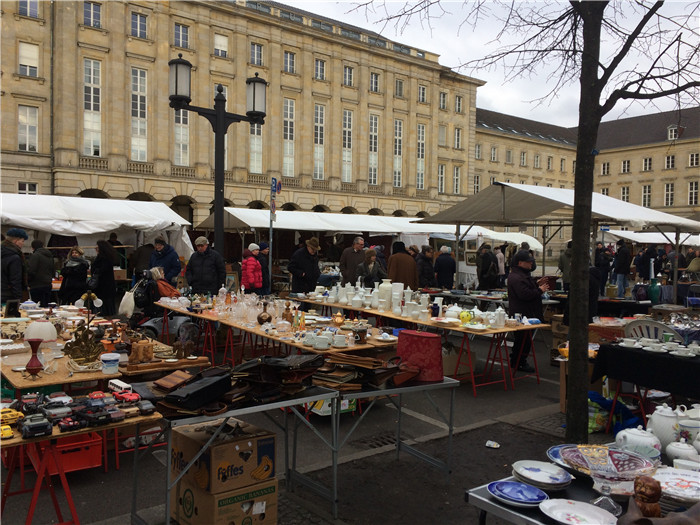 德国的跳蚤市场最热闹的当属在周日的时候了。因为在德国,大部分的企业,商店,餐馆甚至超市都会在周日休息(除了个别位于火车站的商店),而这一天除了礼拜,郊游外,德国人最有兴致去看看的当属当地的跳蚤市场了。