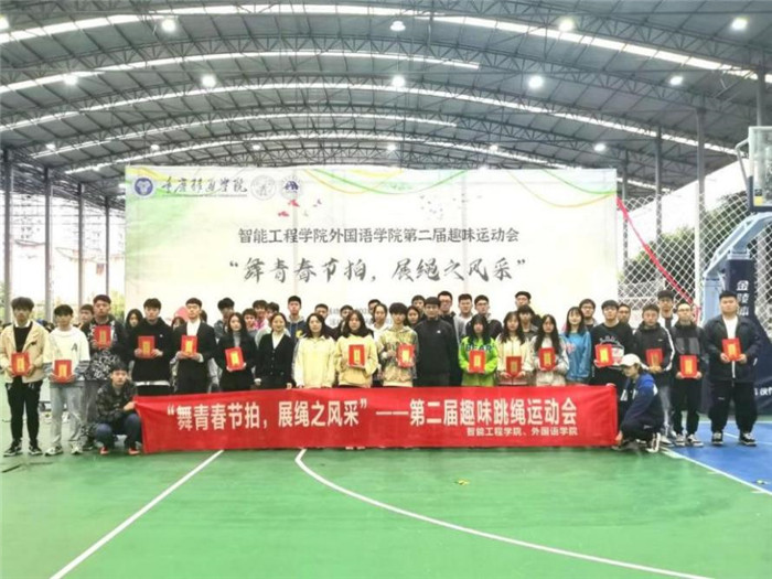 外国语学院联合智能工程学院于10月20日下午14:00在风雨篮球场举办“舞青春节拍,展绳之风采”第二届趣味跳绳运动会。本次比赛分为单人赛和团体赛,既能突出同学们的个人风采,也能体现出团队的合作精神。相信通过举办本次比赛能够增进两院间感情,从而更有利于院系展开今后的学习与工作。