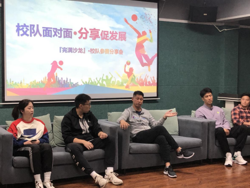 5月24日晚7时,竞技体育中心在爱莲书院多功能影音室,举办了主题为“校队面对面·分享促发展”的完满沙龙·校队参赛分享会。竞技体育中心刘玉林副主任,体育训练部孙哲主任到场交流,竞技体育中心全体教练员与各校队学生代表出席沙龙。