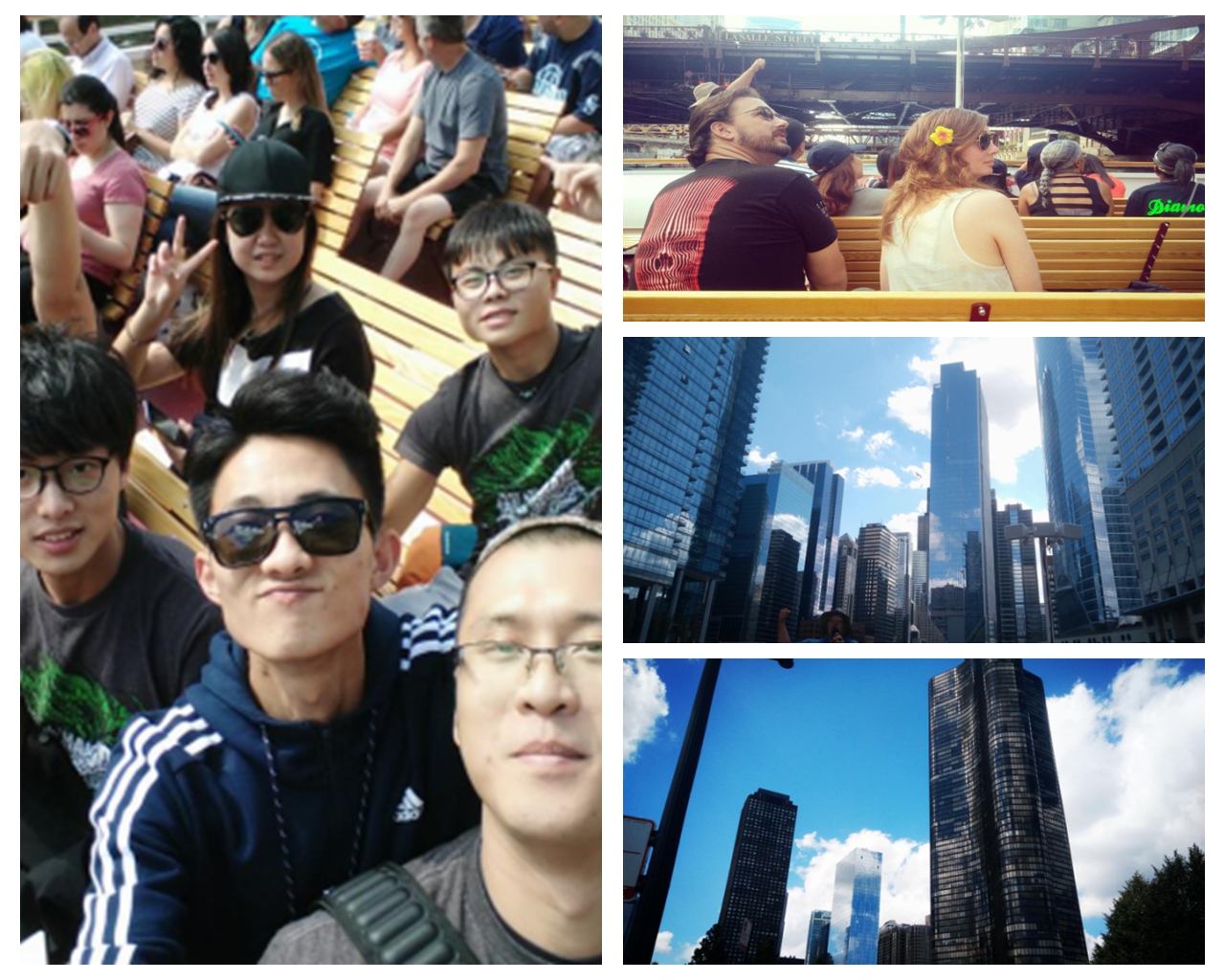 一路畅游,一路拍照,我想用镜头记录下在芝加哥的每一分每一秒,接下来我们坐上了游船享受阳光,顺着密歇根河游览芝加哥全景,穿上有一名讲解员,幽默风趣,路途上一直给我们讲解芝加哥的历史文化,每到一个建筑一座桥他都详细的给我们做讲解,不管是它的修建时间,它的年代,它的用途。只要你想知道关于它的一切他都说的很详细。每一块砖瓦藏着年代故事仿佛告诉过往匆匆的脚步那段凝重的历史,每一幢高楼直指天际,仿佛是要宣告世人这座城市不断向上的新生力。穿梭在ChicagoRiver两岸的建筑群中,感受ChicagoWindow演绎下的芝加哥学派与时代潮流设计派的完美组合,视觉饕餮盛宴,我们驻足仰望似个孩子。芝加哥位于美国中西部的伊利诺伊州,东临壮丽的北美五大湖之一密歇根湖,是著名国际金融中心之一,也是全美人口第三大城市(仅次于纽约和洛杉矶)。芝加哥地处北美大陆的中心地带,是美国第二大商业中心区、美国最大的期货市场,其都市区新增的企业数一直位居美国第一位,被评为美国发展最均衡的经济体。此外,芝加哥拥有美国最高的十座摩天大楼中的4座和曾经的世界第一高楼西尔斯大厦(保持最高楼世界纪录1974年-1998年),被誉为“摩天大楼的故乡”。同时,芝加哥还是美国铁路、航空枢纽和世界最重要的文化科教中心之一:拥有世界顶级学府芝加哥大学(The University of Chicago)、西北大学(Northwestern University)和享誉世界的芝加哥学派,近百位诺贝尔奖得主在(曾在)芝加哥工作、求学(芝加哥大学89位[3],西北大学8位)。芝加哥常见的别名包括:“风城”,“芝城”等,是世界著名的旅游圣地,芝加哥代表的美国中部时间所在的时区是UTC/GMT-6(西六区),与处在UTC/GMT+8(东八区)北京时间相差14小时(芝加哥夏令时期间相差13小时)。