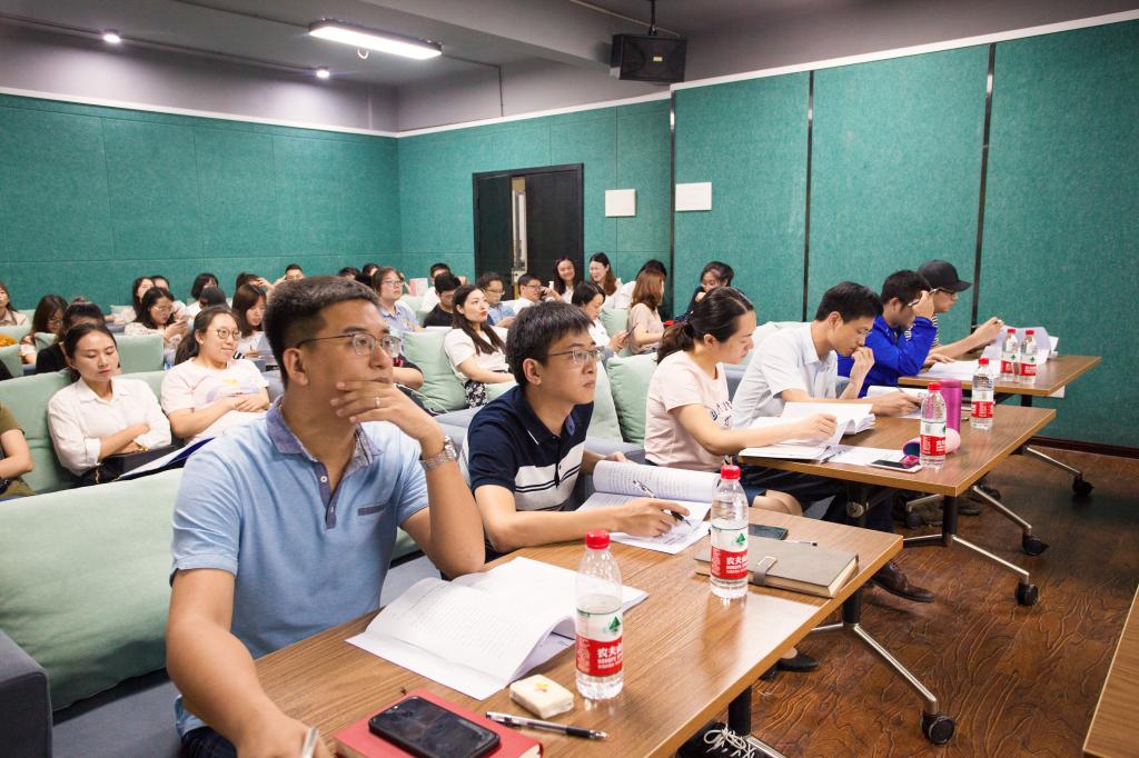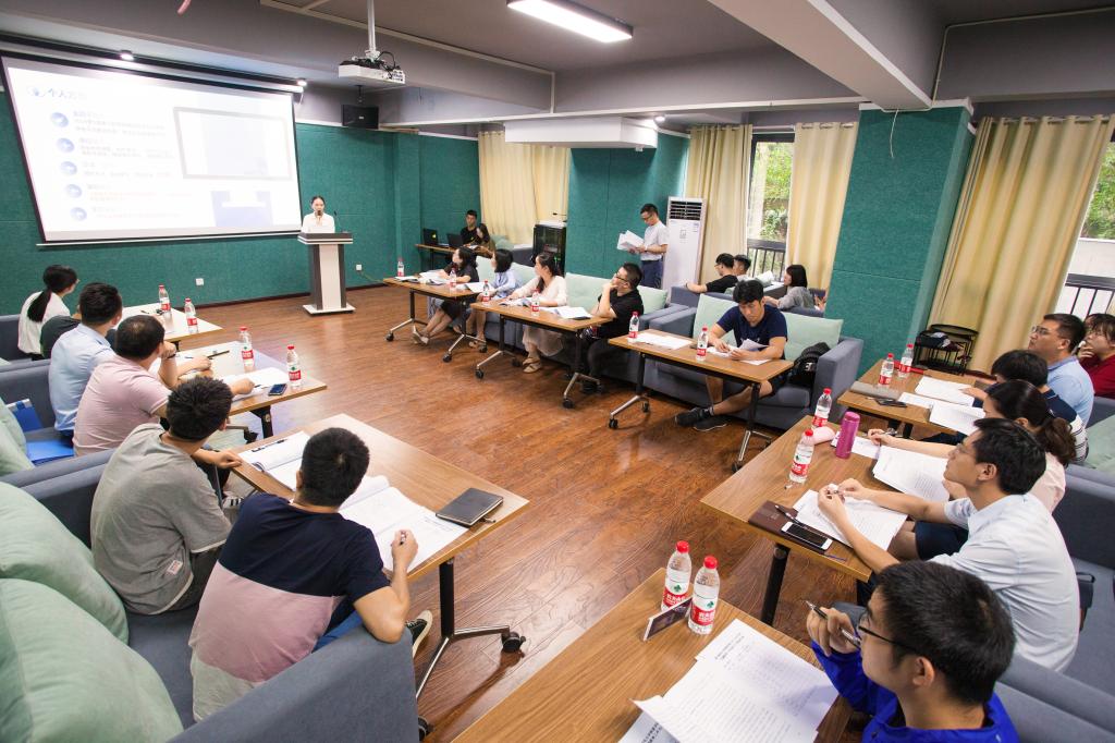 述职演讲阶段在6月26日、6月27日两天内分为三场,对57名申报教师进行述职演讲评审,评审团由完满教育委员会委员和学生校长助理团代表组成,57位老师分别针对自己一学年来的主要工作成绩、亮点、感悟进行了演讲,现场紧张而热烈。