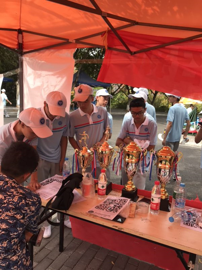 为了方便多个宿舍区同学报名参加,校男足的小伙子们在江晓羽教练的带领下,从物资处借到了帐篷、桌子和凳子等物资,在A区食堂门口和D区宿舍大门口处设了两个招新点。