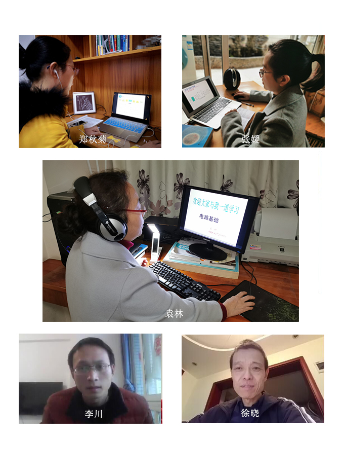 在学习过程中,每位老师还就如何更好地开展疫情期间教育教学工作进行了相应的讨论。张媛老师通过“钉钉直播”结合手机镜像软件,实现远程手写板书的实时传送,让学生们更好地掌握《模拟电子技术基础》中的电路分析过程。为更好地管理学生,袁林老师在讲课过程中引入了相应的签到软件,同时,就网课期间出现的问题,袁老师向每位学生发了相关的调查问卷,从而更好地了解学生动态,管理好课堂。另外,徐晓老师为加强和学生的课堂互动,引入了“在线大题加分制”,即每节课都会抽部分同学提出问题,然后再由其他同学回答,并用加分政策激励学生,从而加强学生学习的积极性。