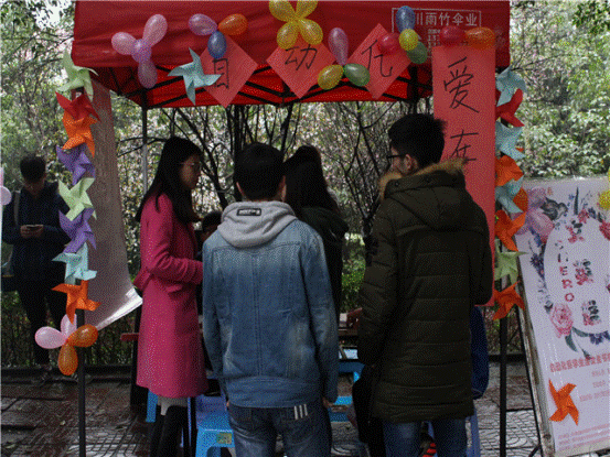 蒙蒙细雨下,通信与信息工程系女生部的同学们早早来到活动现场,精心布置着自己的摊位,迎接各位“女英雄”的到来。在值班人员的讲解下,女生们领取便利贴写下了对做一个自信自立女生的见解、祝福、经历等,贴在了工作人员精心装饰过的“励志笔录区”