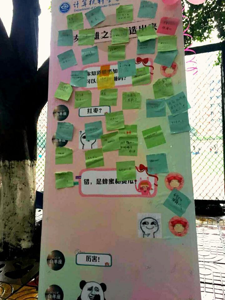 “多出去走走,多看书,修炼自身气质”,“做事情的时候勇敢一点!”“祝各位女神…经们节日快乐!”,“笔录区”的便利贴越来越多,每句励志心语都是这漫天细雨中温暖的雨衣,包裹着我们,走向那春暖花开的世界。“我想听《凉凉》”,《一人饮酒醉》,《童话》…“歌曲展示曲”也渐渐被粘满了,一首又一首“赞歌”被男生抽取,除了那纯纯的歌声,更多的是加大了男女同学间的情感交流,那暖暖的情谊淌过心间,