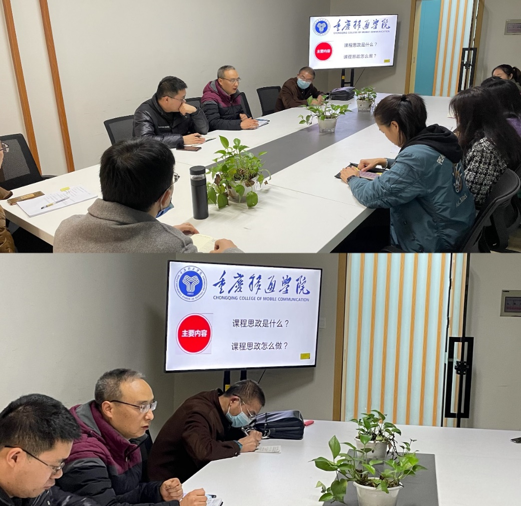 为深入实施《高等学校课程思政建设指导纲要》,进一步提升高校教师育人意识和能力,在教育部高等教育司指导下,贯彻落实重庆移通学院推荐学习“课程思政优秀案例”示范课方针,11月24日,通信与信息工程学院智能信息技术教研室在廊桥书院树洞议事厅举办了“课程思政”教学沙龙。活动由智能信息技术教研室主任冯文果主持,教研室全体教师参加。