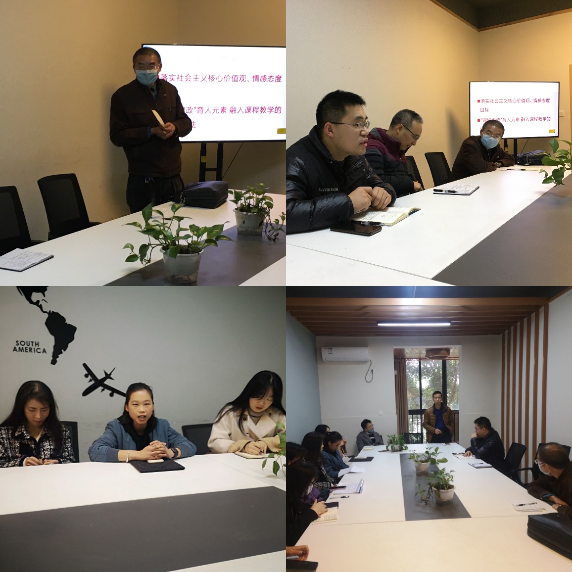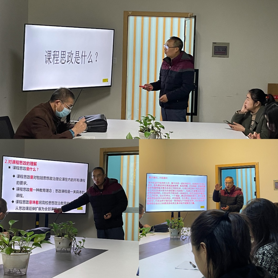 整个活动中老师们积极响应,群策群力,冯老师的讲解深化全体教师对课程思政的科学认知,启发教师们的课程思政思路。老师们的交流拓宽了课程建设视野,希望在以后专业课程教学中及时融入中国共产党人精神谱系、国家和地方“十四五”发展规划等内容,引导学生厚植家国情怀,学好本领,报效国家、服务社会,力求实现“课程门门有思政、教师人人讲育人”。