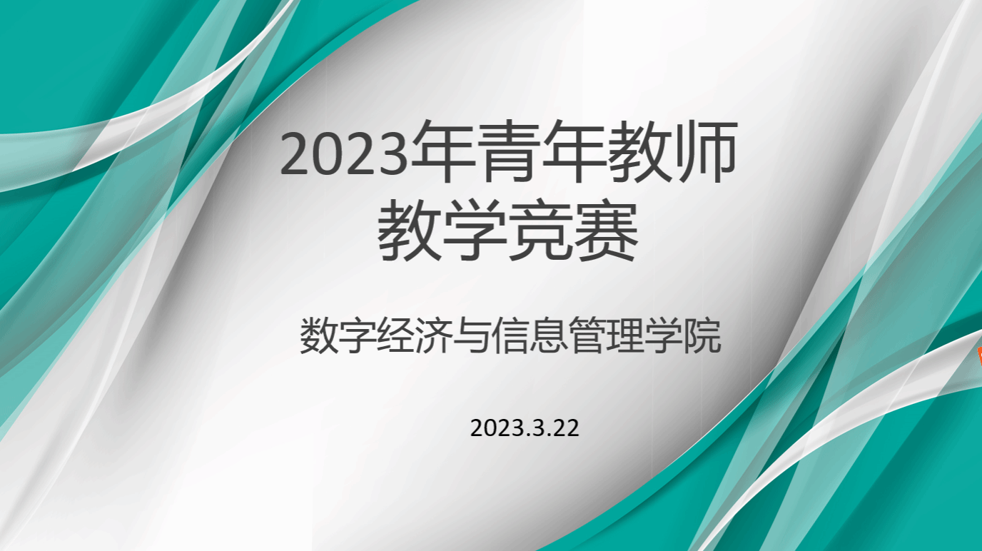 教育者,师之大,学以为魂!好的教师,不仅有坚实的基本功,更重要的是还有好学之能。为提升学校青年教师教学水平,以“赛”促“教”,以“教”融“学”,数字经济与信息管理学院于3月22日14:00在双栀403教室举办了以“同心竞技能,齐力展风采”为主题的青年教师教学竞赛。