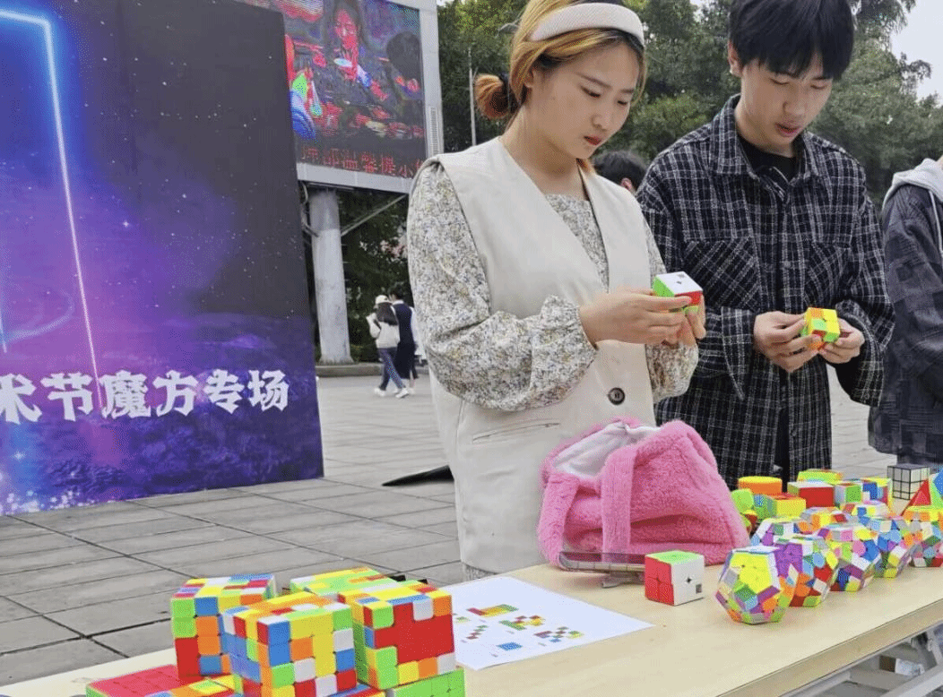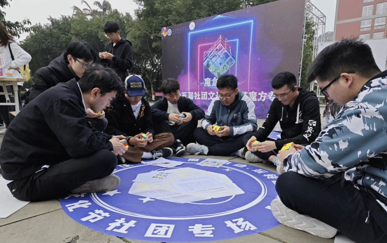 社团作为兴趣挚友集聚之地,是锻炼当代大学生发挥兴趣、开发潜能、展现自我的重要活动平台。为更好的带动我校社团活动氛围,打造乐趣、文化、创意、自由的社团文化氛围,学生社团管理中心牵头、魔方社承办的社团文化艺术节社团专场活动——魔方专场之“魔盒启动”,于3月31日上午在黄桷树广场顺利举行,是百位魔方竞速者的竞技平台,是挖掘身边隐藏的魔方达人,是寻找身边的魔方喜爱者、竞速者、灵敏者,从“心”掀起校园魔方的文化浪潮。