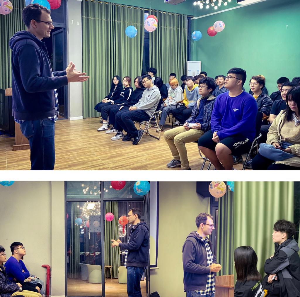 “德国的节日有什么不同?”德国外教Elias讲述了德国人如何庆祝各种节日,重点描绘了德国人如何庆祝近期的圣马丁节,同时有许多学生也跟外教交流了关于德国节日以外的话题,为以后出国留学之路打下必要的基础。就在这轻松而愉快的气氛当中,同学们的语言水平不仅得到多维度的提升,也收获更多学习好友。