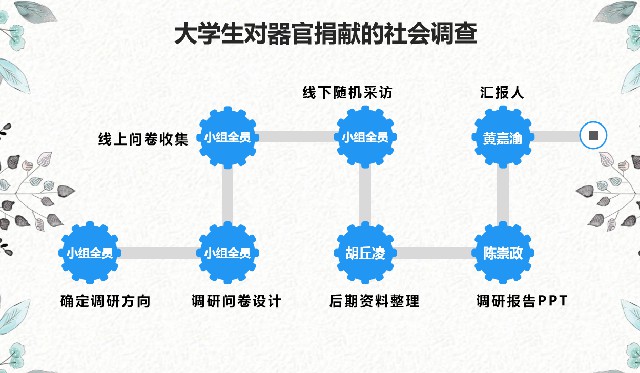 余成娟同学从民众对基因编辑的了解程度、接受程度以及基因编辑合法化的探究来进行汇报,得出了基因编辑应遵循“以人为本、公正原则、知情同意原则”的调查结论。黄嘉渝同学从一段采访身边同学对器官移植了解程度、捐献意愿的视频展开话题,生动的为我们解读了器官移植及器官捐献的重要意义,呼吁我们要加入到器官移植的社会公益当中来。