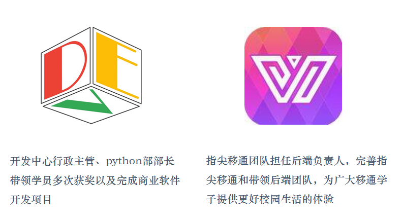 同时为更好的培养自己社会责任意识,发挥个人能力,他也积极为学校和部门做出自己的贡献;担任双体系第八期开发中心行政主管、python部长并带领学员多次参赛获奖以及完成商业软件开发项目;另外加入“指尖移通”团队,担任后端负责人,实现指尖移通相关功能完善,为广大移通学子提供更好校园生活的体验。