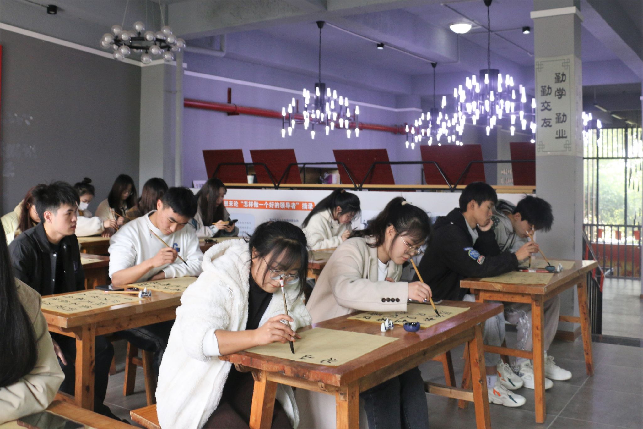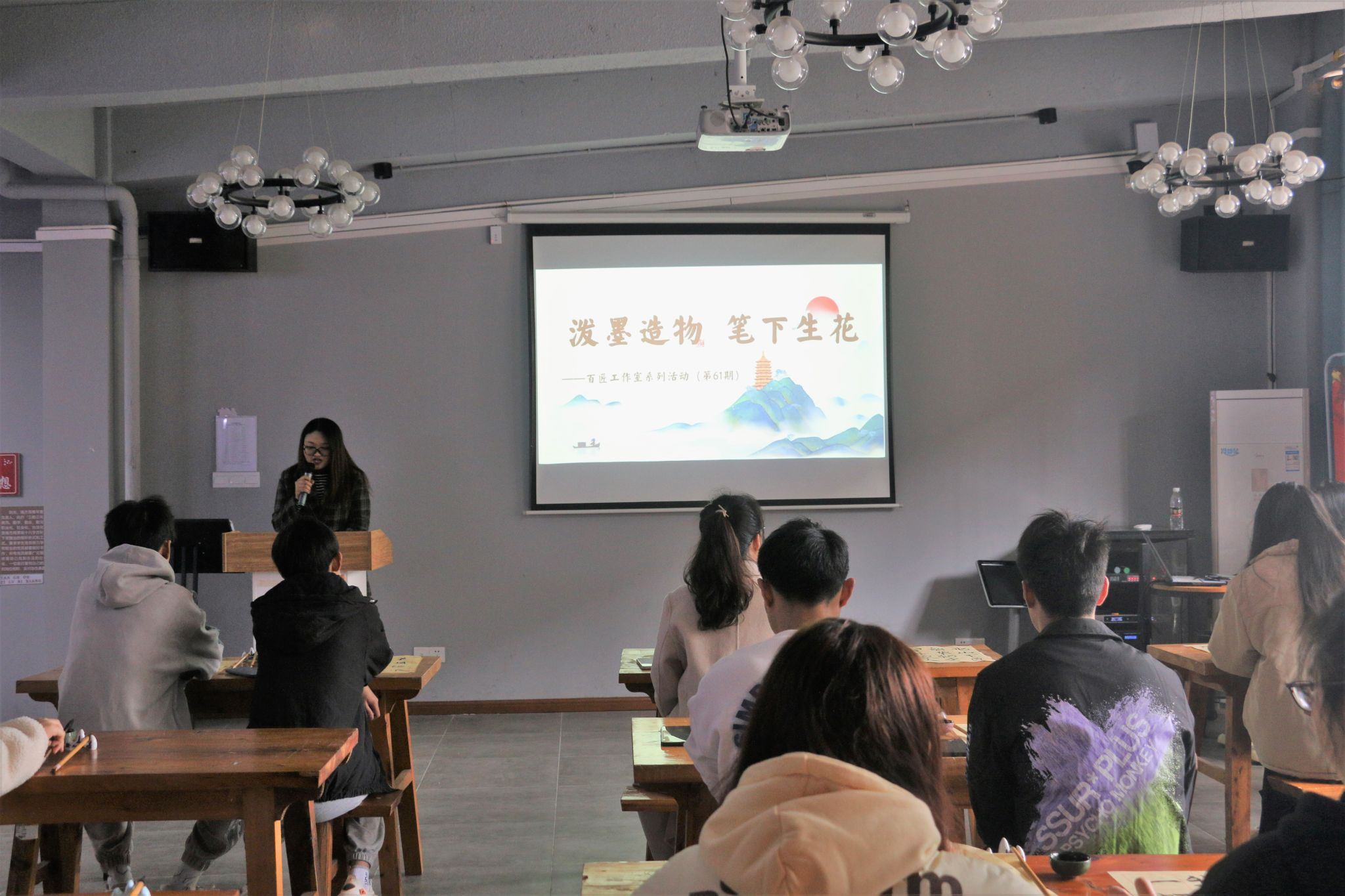 书法是中华民族的文化瑰宝,人类文明的宝贵财富。北山书院于2月24日在北山书院二楼红岩馆举办“泼墨造物,笔下生花”——百匠工作室系列活动(第61期),参与人数达25人次。在主持人引导下,学子们了解到关于书法文化与知识,通过实践参与提升自己的书写技巧。本次活动为学子们提供一个展现自我的平台,培养同学们对书法的兴趣,增强同学们民族自信心和自豪感。