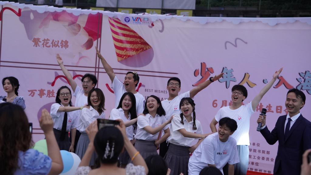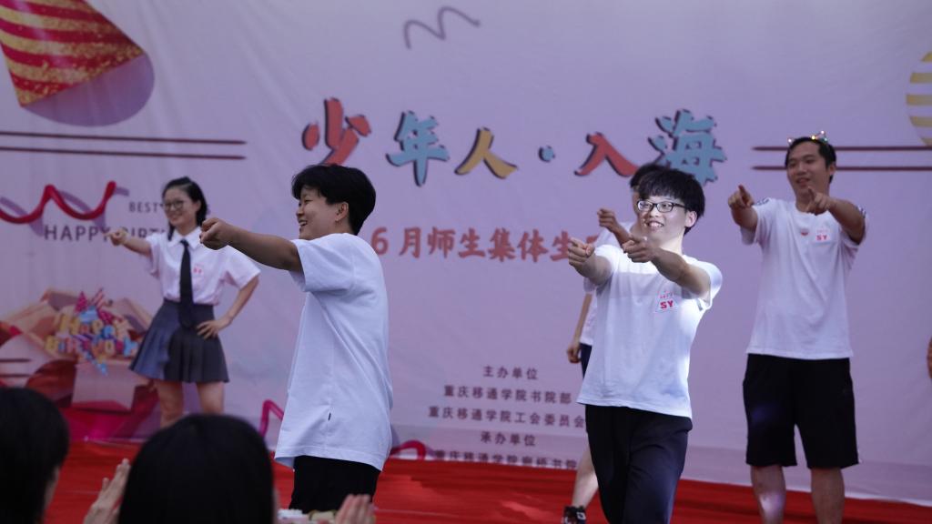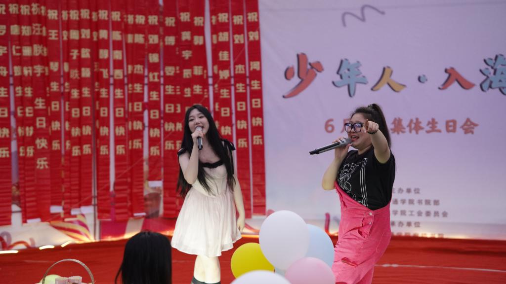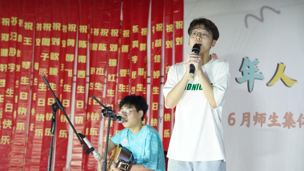 活动最后,由胡中旭、李识森为大家带来的歌曲《入海》再次点燃现场观众的共鸣。伴随“滴,你的移通站已到达,请奔赴锦绣前程”的报幕声,6月师生集体生日会终于画上圆满句号。