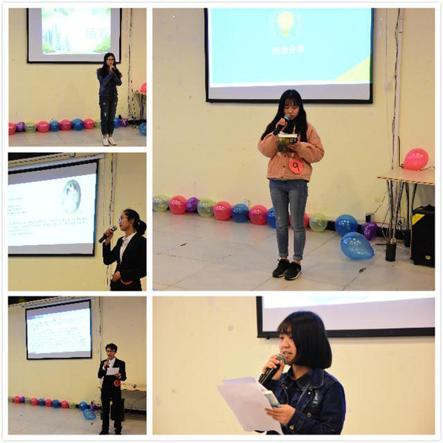 “一日不读书,胸臆无佳想”读书不仅能丰富一个人的生活,更重要的是丰富一个人的思想与胸怀。整个分享会可用三个词语形容,范围广、知识丰富、内容经典,在活动中同学们的分享内容从古至今,从国内到海外,从名著经典到网络小说,每一段分享都具有很高的价值。