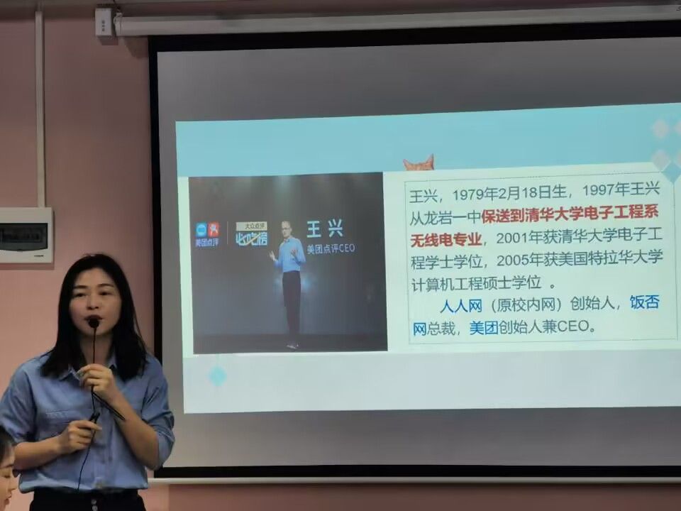 分享会在陈静老师“大家都用过美团吗?”的发问中徐徐拉开帷幕。熟悉的美团,不熟悉的美团创始人,引起了大家对美团创始人——王兴的好奇。接着陈静老师用文字图片配上一个简短的视频,带领大家认识了王兴,了解了他从富二代的清华学霸到开启创业之路及其一路上的艰辛。