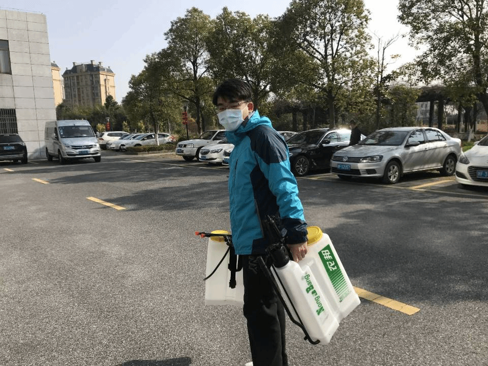 消毒杀菌,尽全力提供一片安全的环境。他肩负16公斤的水箱,不停歇地为医院、广场等公共场所与设施进行消毒,即使是稀释了 50 倍的次氯酸钠原液,散发出的气味很刺鼻,第一次这样消毒的时候,他差点吐在口罩里。