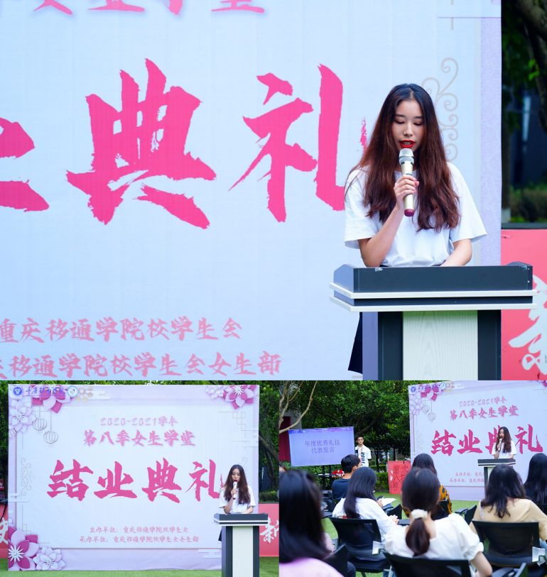 春去夏来,重庆移通学院学生会于2021年5月21日在爱莲小广场举行第八季女生学堂结业典礼。