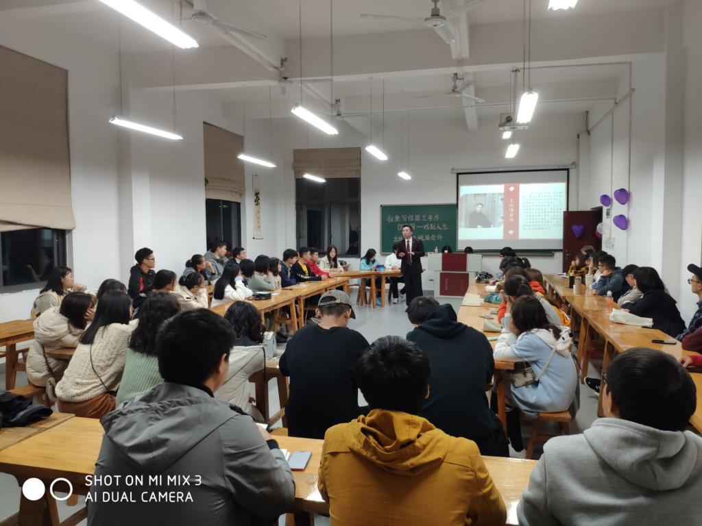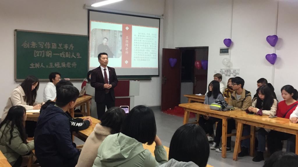 11月17日晚上7点,创意写作团兰亭叙第27期文化系列活动在C区北山斋书院F201教室顺利举行。创意写作团的成员如约而至,本期“兰亭叙”活动由创意写作学院的作家教师、作家班戏剧工坊导师王恒绩老师主讲《戏剧人生》。