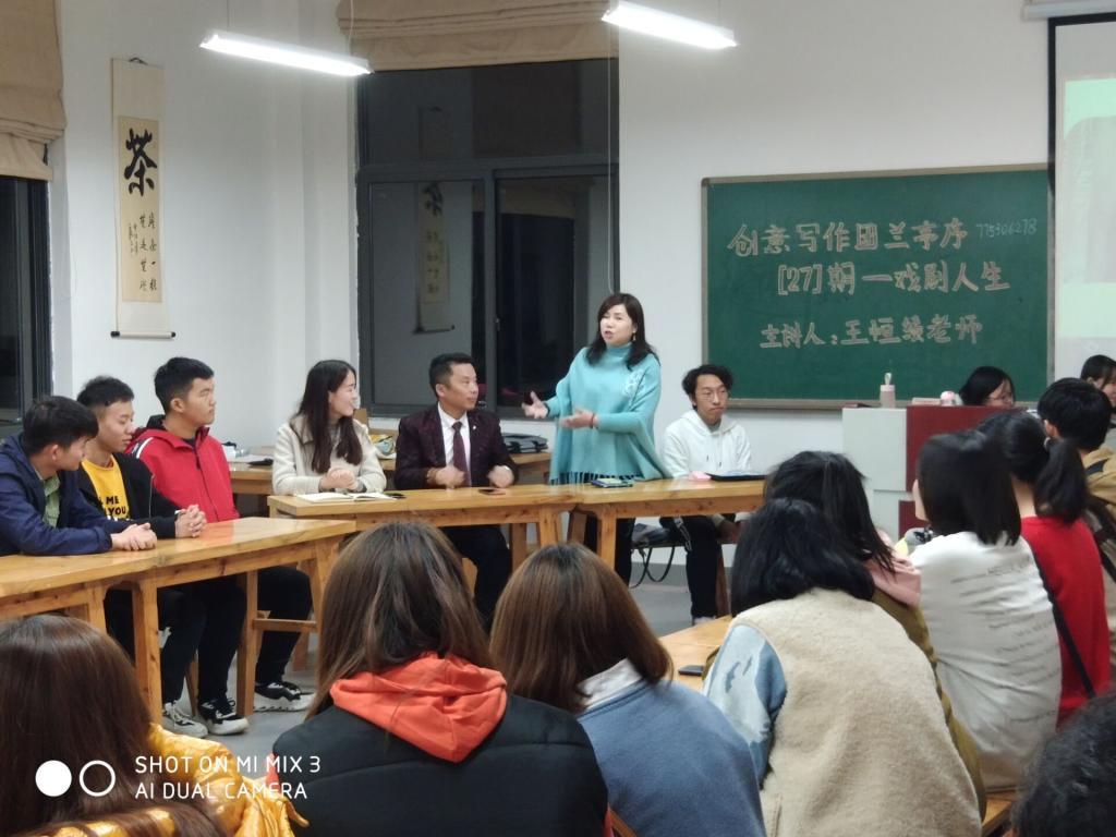 最后,由创意写作团的指导老师毕然老师为本次“兰亭叙”活动作总结,毕老师表明:师生之间需要的是有价值、有意义的交流,王恒绩老师的那种传奇经历也让她感动,面对逆境的坚韧不拔的处理方式令人钦佩,也的确值得大家学习。也许,选择文学的陪伴,虽然表面上会与他人显得格格不入,但是因为你心中有文学的力量,你会觉得人生会显得格外的不同。正如王恒绩老师的戏剧人生,绝非偶然,而是他的必然成果,因为只有在社会大熔炉里的千锤百炼,方能煅出真金。