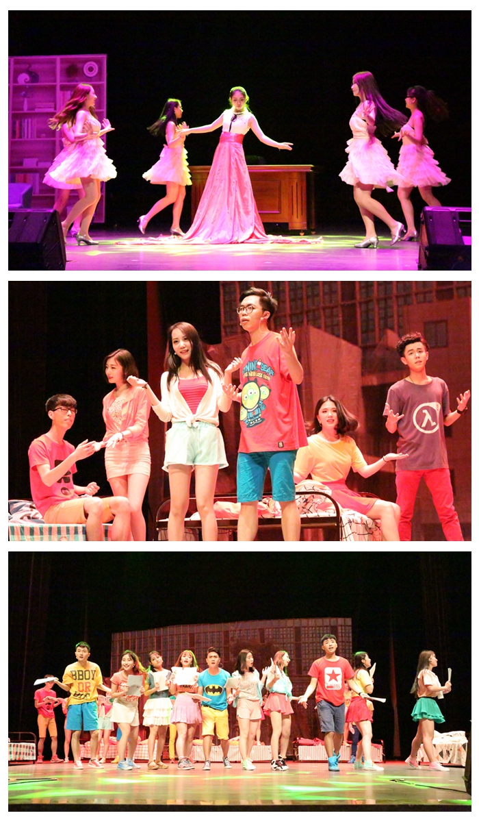 故事情节紧扣大学生的生活,从一个网络主播的视角开始,开场活力绽放的劲歌热舞表演,将观众们拉进这场年轻无极限的视听饕餮盛宴中,极富欧美范儿的音乐旋律搭配贴近大学生活的歌词,青春浪潮迅速荡漾在整个演出大厅。