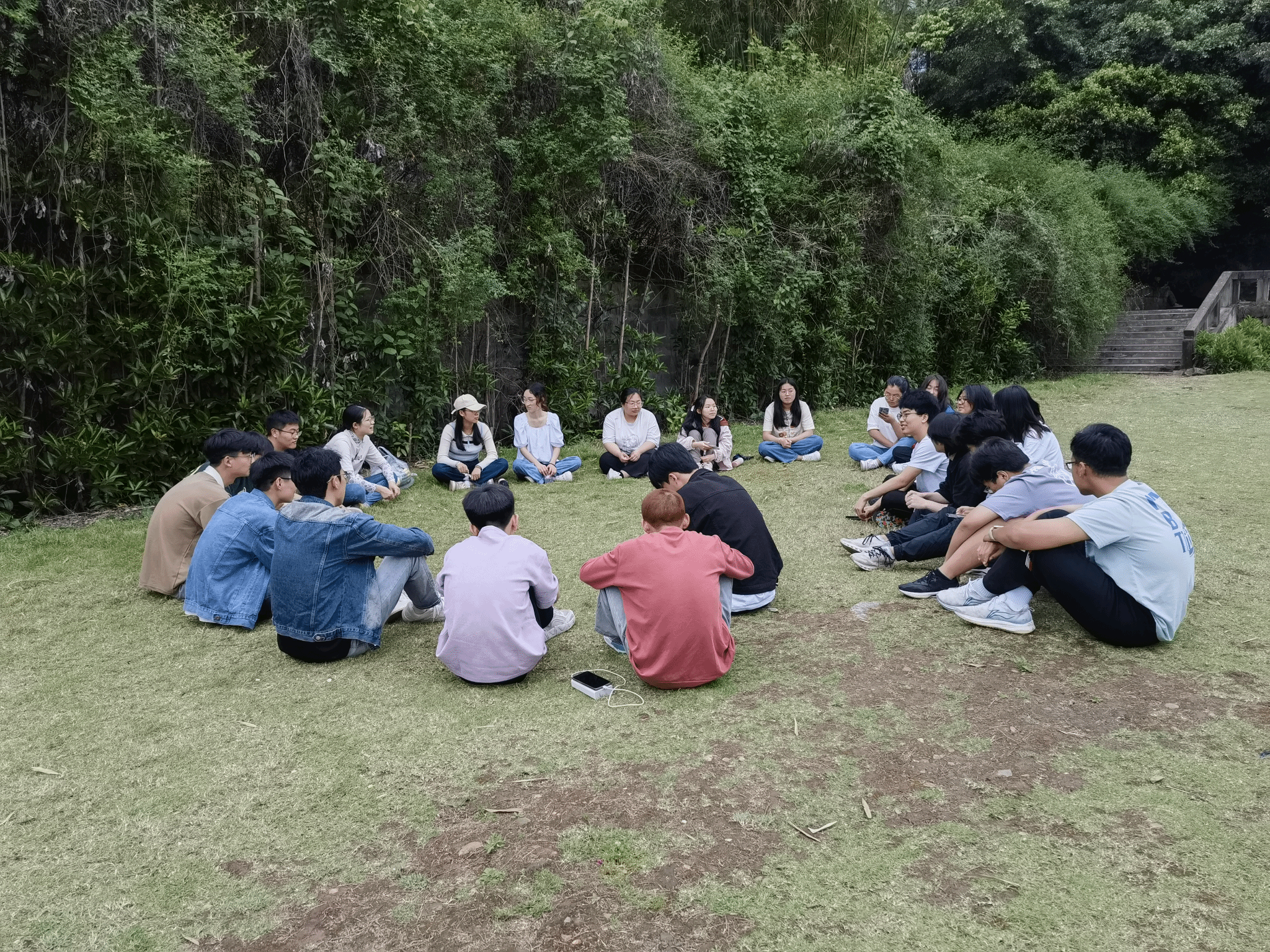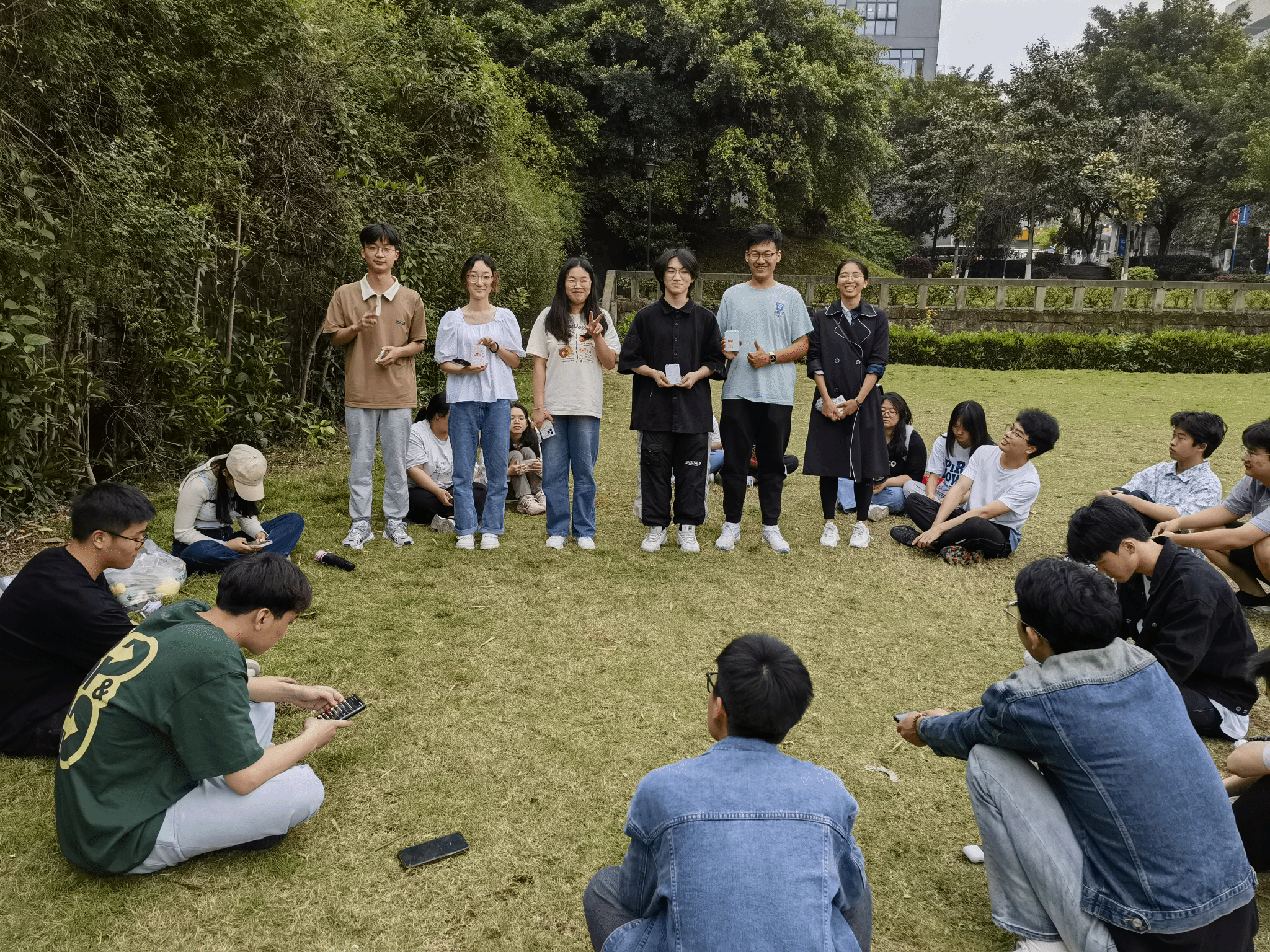 4月21日,由余翠兰和冯淼两位异科导师负责组织这次联谊活动,带领2022工商管理2、3和4班的学生,以及我们带比赛的智能工程学院大三学生,在双子湖旁边的草坪共同玩了一个卧底,五角和一元成团游戏。在举办活动之前,余翠兰和冯淼老师提前准备活动方案,以及精心准备游戏奖品,分别购买了一、二、三等奖不同价位的小物件,如笔记本、玩偶娃娃、小风扇、保温杯、水杯、太阳伞和木梳等。